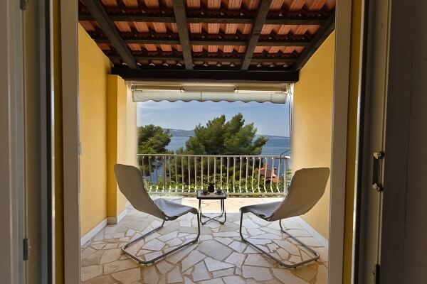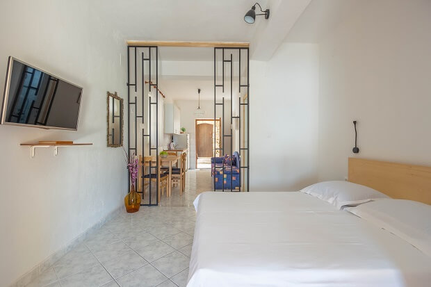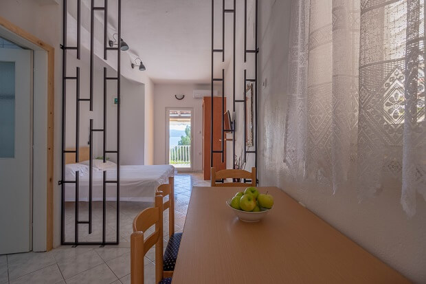 This cozy one bedroom apartment offers you a terrace overlooking the sea with two sun deck chairs to enjoy your mornings/evenings.