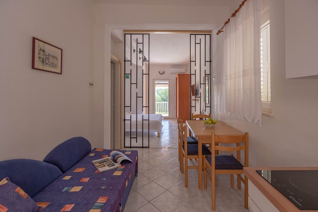 The apartment is situated in the holiday house, together with two other apartments, with the possibility to book the whole house. In front of the house there is a free private parking and the apartment has an access to the barbecue area.
