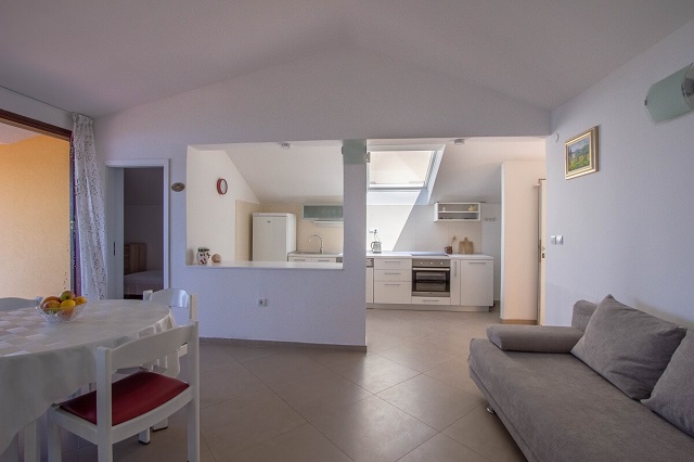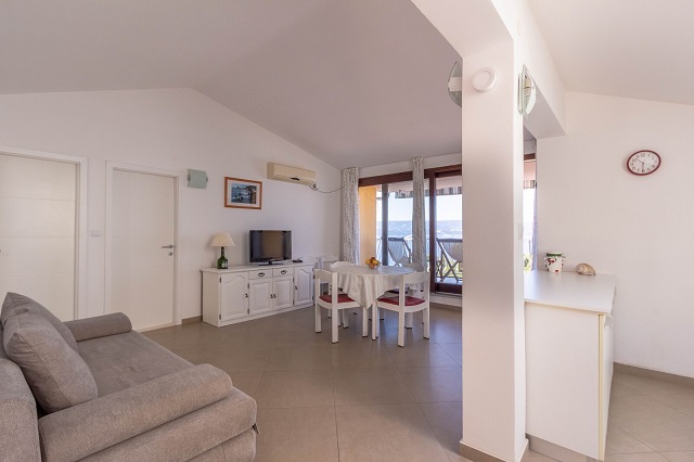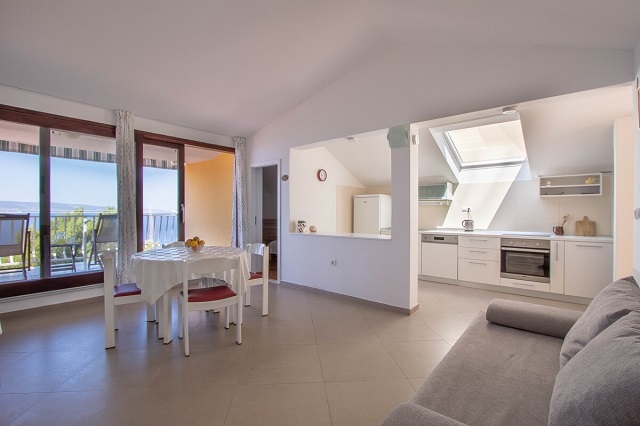 This spacious three bedroom apartment offers you beautiful big terrace overlooking the sea, a living room with a fully equipped kitchen and a patio in front of the apartment with a big outdoor dining table for six people and a barbecue, to enjoy your morning/evening meals.